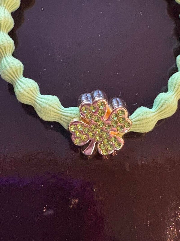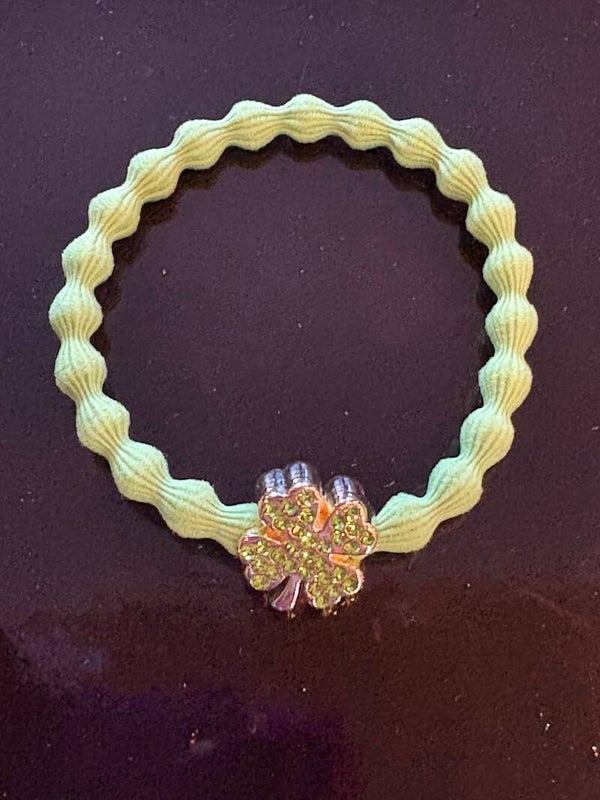 Mooi HAARELASTIEK / armbandje in de kleur appel groen met een klavertje met steentjes