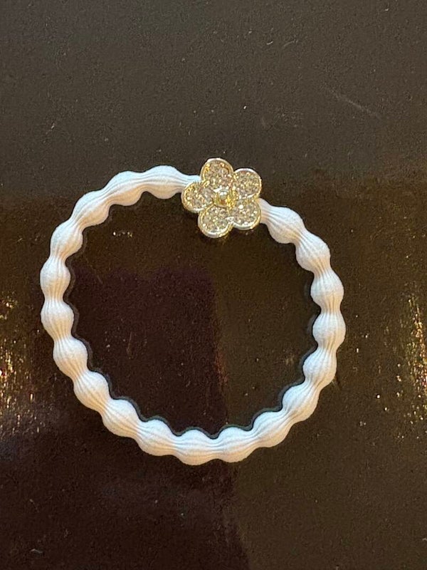 WIT MET EEN BLOEMTJE BY ELOISE LONDON HAARELASTIEK / ARMBANDJE